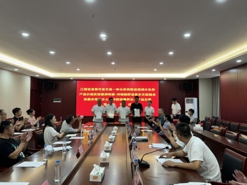 7月29日上午,江西省宜春市宜豐縣“淵明里·詩畫園野溫泉農文旅融合發展示范區水土保持旅游康養生態產品”交易簽約會在宜豐縣順利舉行。宜豐縣人民政府副縣長余敏出席并致辭,宜春市水利局副局長黃彬彬出席并講話,宜豐縣水利局、發改委等部門有關同志,江西省公共資源交易集團、各簽約單位、技術支撐單位及媒體代表參加了會議。